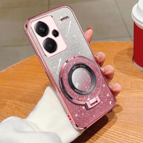 Funda de Teléfono de TPU con Soporte Redondo y Purpurina Degradada Plateada para Redmi Note 13 Pro+ (Rosa)
