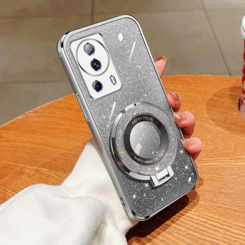 Funda de Teléfono de TPU con Soporte Redondo y Purpurina Degradada Plateada para Xiaomi Civi 2/13 Lite (Plateada)