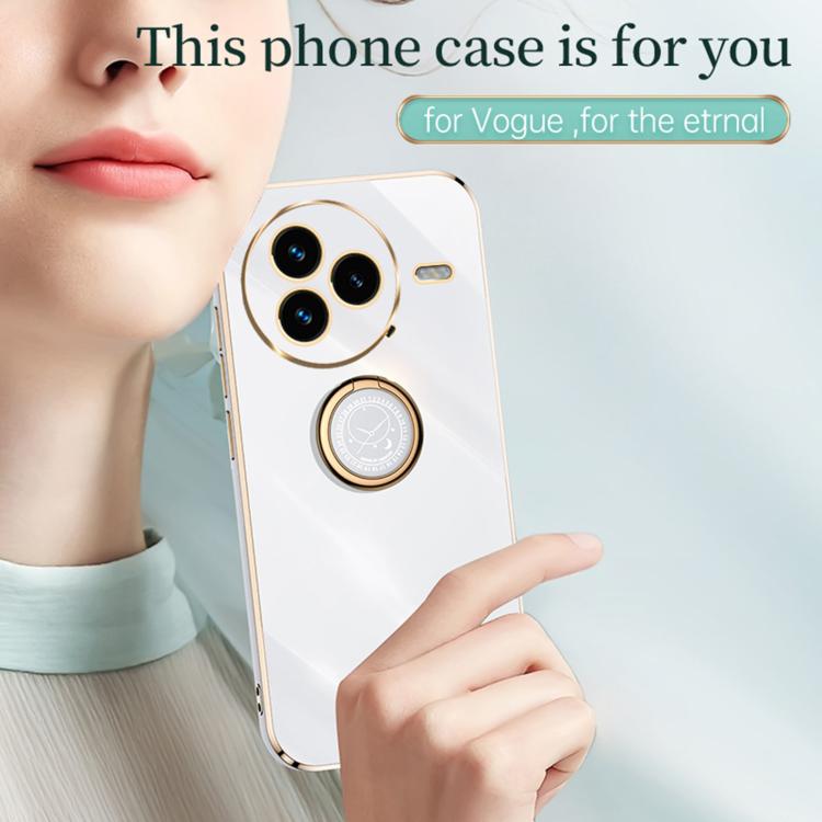 Funda de TPU con borde recto 6D galvanizado y soporte para anillo para Xiaomi Civi 5 Pro XINLI (morado cereza)