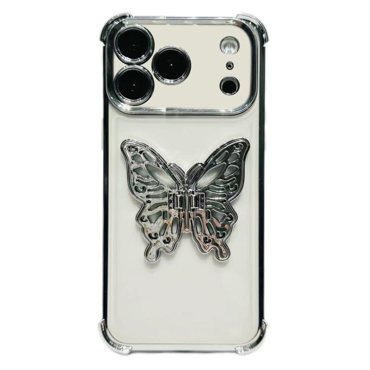 Funda de TPU con diseño de mariposa 3D galvanizada para iPhone 17 Pro Max (plateada)