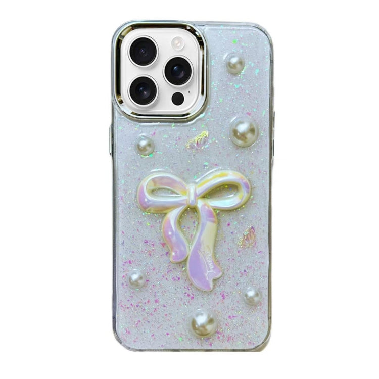 Funda TPU iPhone 16 Pro Lazo 3D Flores Amor Perlas (Lazo de Perlas)