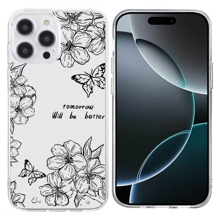 Funda TPU iPhone 16 Pro Patrón Pintura Colorida Mariposa y Flores
