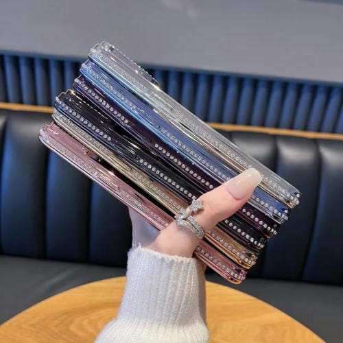Funda de TPU con purpurina y degradado de agua con diamantes para iPhone 17 (azul)
