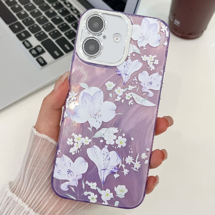 Funda TPU iPhone 16 Textura Plantas Flores Galvanizadas (Flor Violeta Pálido Fl11)