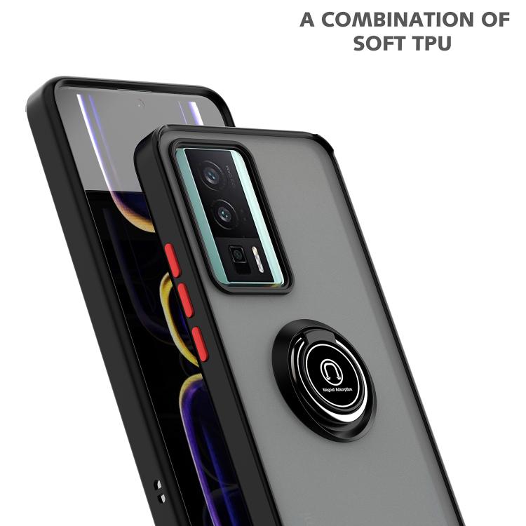 Funda de TPU + PC con anillo para Redmi K60 / K60 Pro / Poco F5 Pro Q Shadow 1 Series (Negro + Negro)