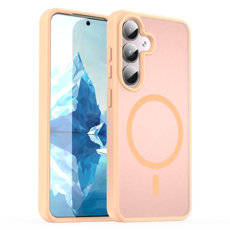 Funda híbrida de PC y TPU translúcida con acabado esmerilado MagSafe para Samsung Galaxy S24 5G (polvo rojo)