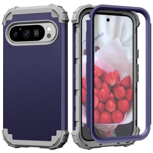 Funda híbrida de silicona 3 en 1 para Google Pixel 9 Pro a prueba de golpes (Azul)