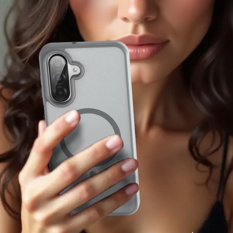 Funda híbrida de TPU translúcida con acabado mate MagSafe para Samsung Galaxy A26 5G (gris plateado)