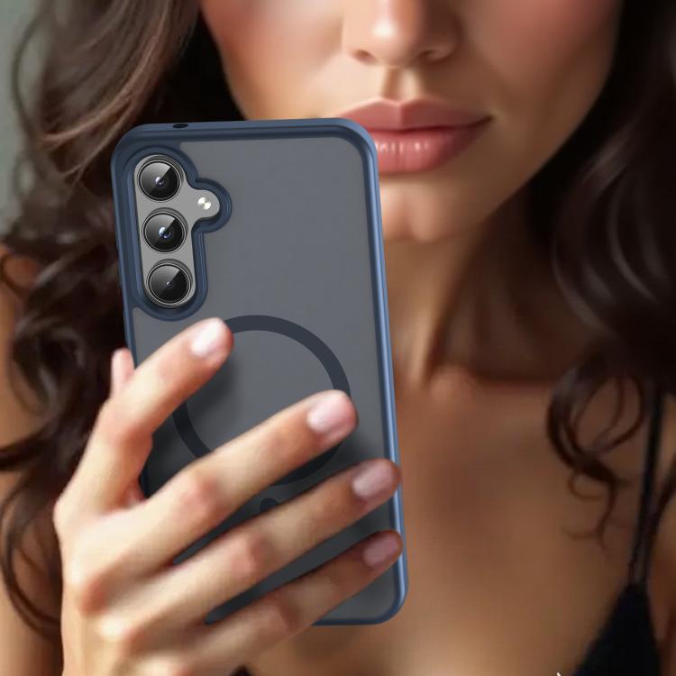 Funda híbrida de TPU translúcida con acabado mate MagSafe para Samsung Galaxy A55 5G (azul cian)