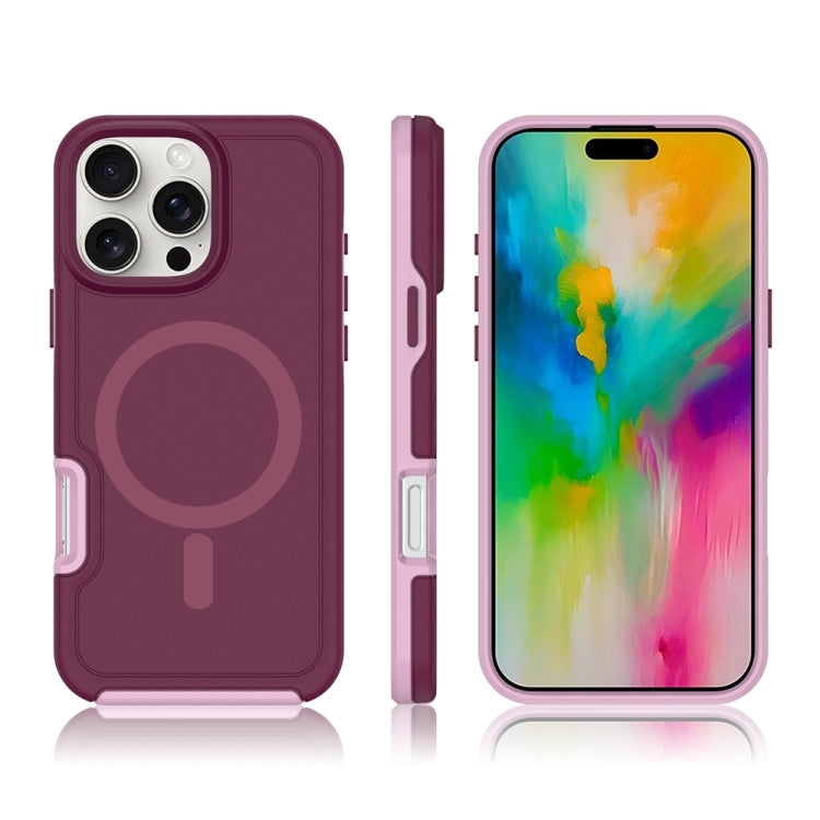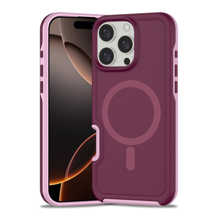 Funda híbrida TPU y PC con Protección Magsafe para iPhone 16 Pro Max (Rojo Vino y Rosa Claro)
