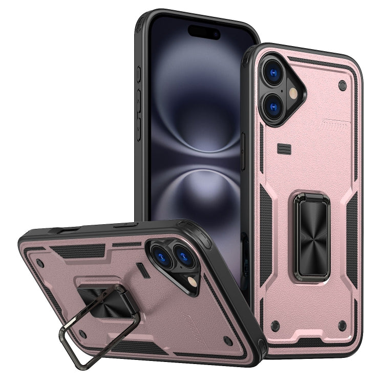 Funda híbrida TPU y PC con soporte para anillo iPhone 16 (Oro Rosa)