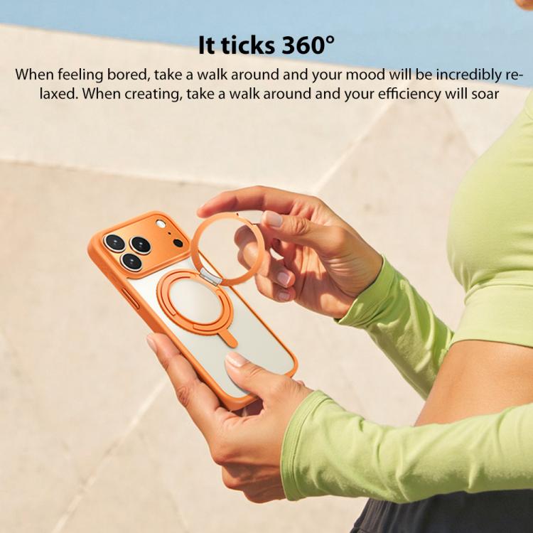 Funda magnética de metal con soporte giratorio MOMAX Magsafe para iPhone 17 (amarilla)
