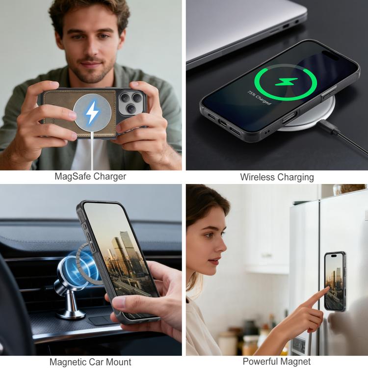 Funda magnética MagSafe AutSpace A05 2 en 1 con textura de piel de becerro retro para iPhone 17 Pro (marrón)