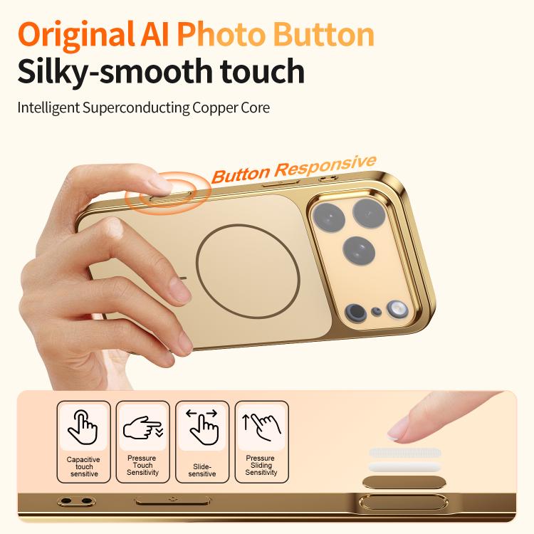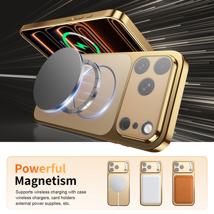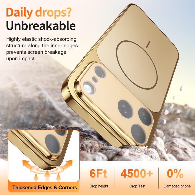 Funda MagSafe con ventana grande y revestimiento de cristal Corning para iPhone 17 (Dorada)