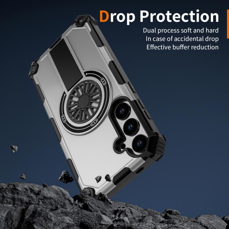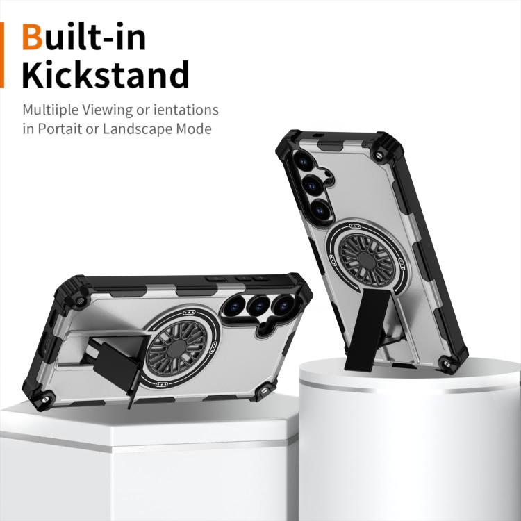 Funda MagSafe para Samsung Galaxy S24+ 5G, a prueba de golpes, con soporte metálico y eje (plateada)