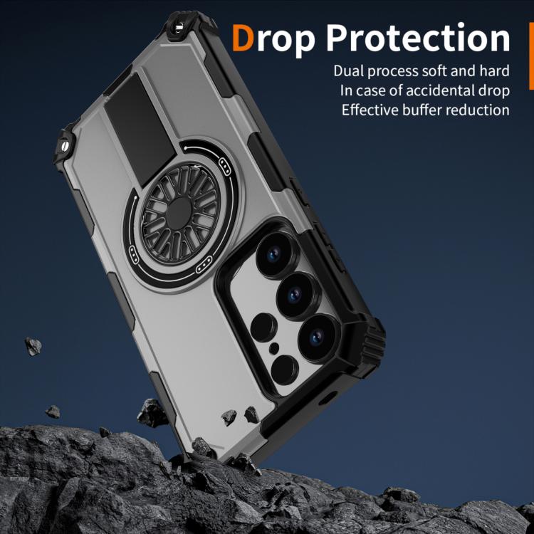 Funda MagSafe para Samsung Galaxy S24 Ultra 5G, a prueba de golpes, con soporte metálico y eje (plateada)