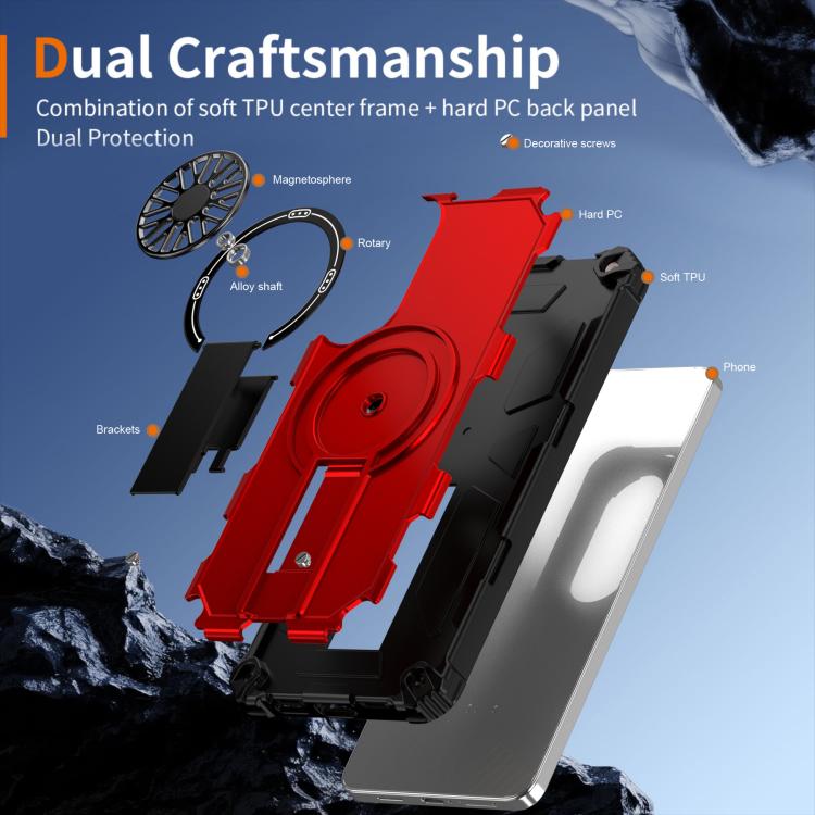 Funda MagSafe para Samsung Galaxy S25 Edge 5G, a prueba de golpes, con soporte metálico y eje (rojo)