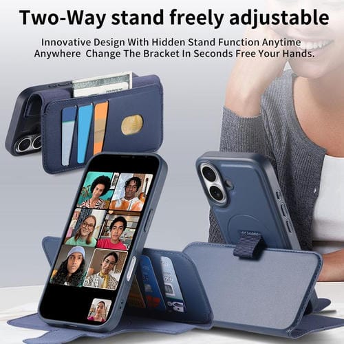 Funda Neo de cuero con correa de agarre para el dedo para iPhone 17 (azul)