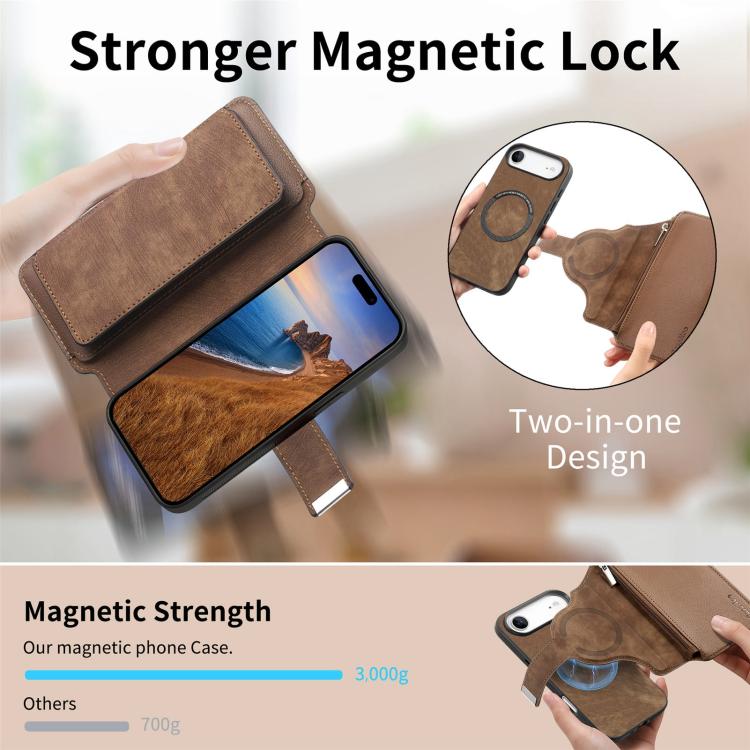 Funda Neo MagSafe RFID antirrobo con cremallera para iPhone Air, estilo retro, de cuero (marrón)