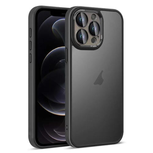 Funda para iPhone 12 Pro con Película Protectora de Lente Armadura Colorida y Tacto Translúcido (Negra)
