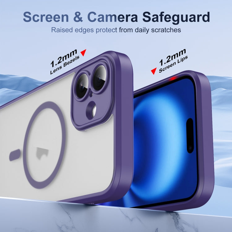 Funda para iPhone 16 Translúcida con Tapa Esmerilada y Botón de Inteligencia Artificial (Morado)