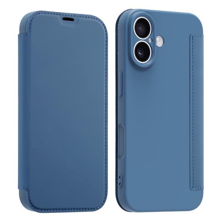 Funda para iPhone 17 con tacto de piel sintética tipo Liquid Skin y ranuras para tarjetas (Azul)