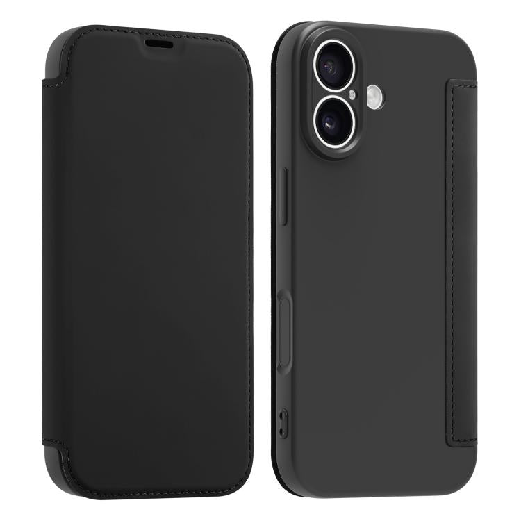 Funda para iPhone 17 con tacto de piel sintética tipo Liquid Skin y ranuras para tarjetas (negra)