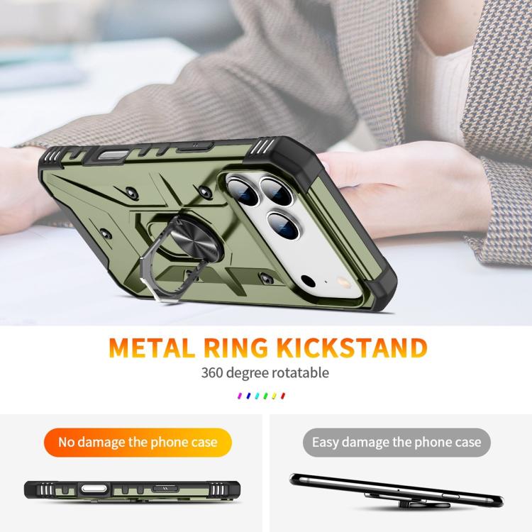 Funda para iPhone 17 Pro Max con soporte de anillo (verde militar)