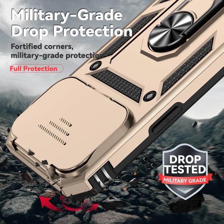 Funda para iPhone 17 Pro Max con soporte deslizante tipo cámara (dorada)