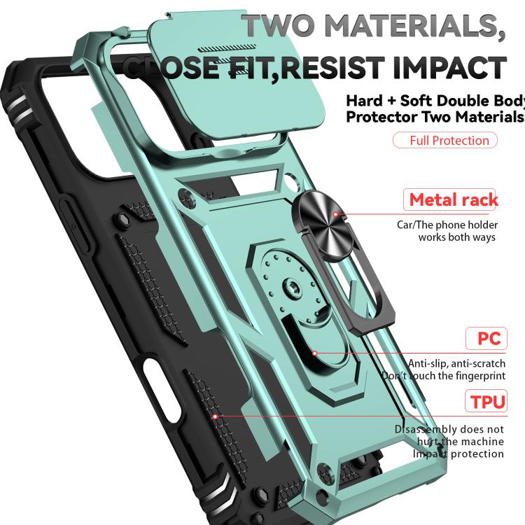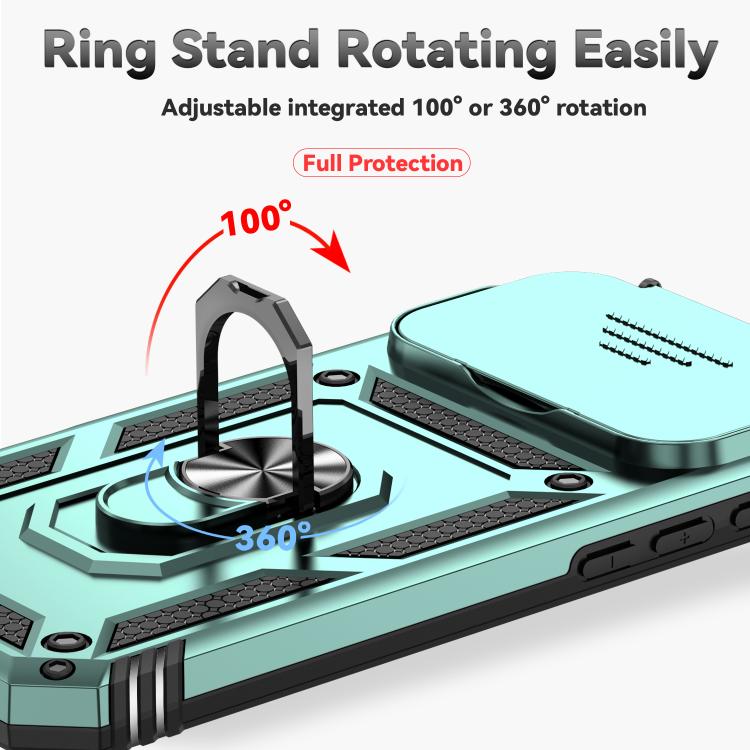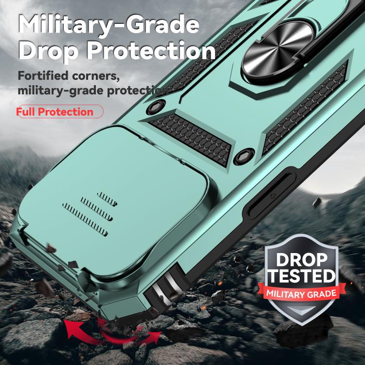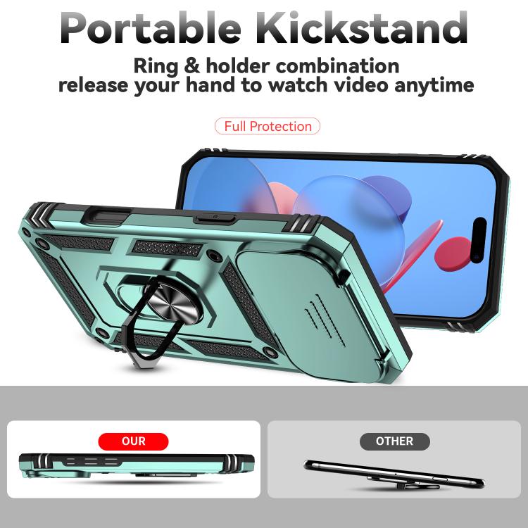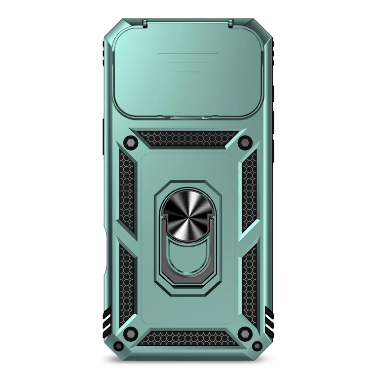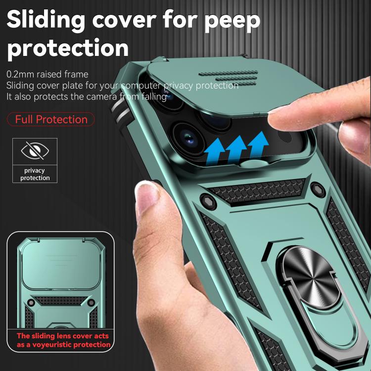 Funda para iPhone 17 Pro Max con soporte deslizante tipo cámara (verde oscuro)