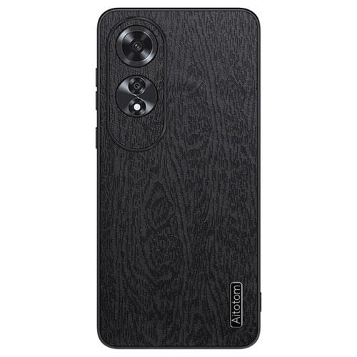 Funda para Teléfono a Prueba de Golpes de Cuero con Corteza de Árbol para Oppo A60 4G Global (Negro)