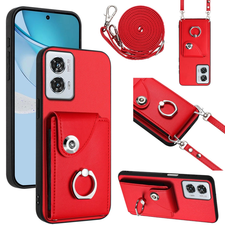 Funda para Teléfono Motorola Edge 50 Fusion Global con Aro, Tarjetero y Cordón Largo (Rojo)
