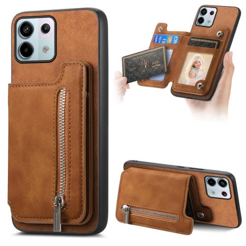 Funda para Teléfono con Cremallera Magsafe Retro para Redmi Note 13 Pro 5G/Poco X6 5G (Marrón)