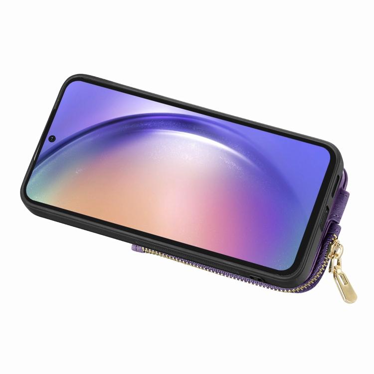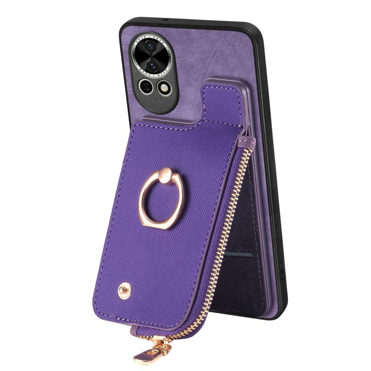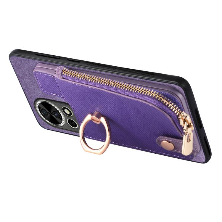 Funda para Teléfono Huawei P60 Pro con Cremallera Vertical y Anillo de Cuero Cruzado (Morado)