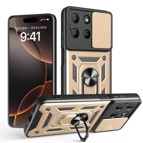 Funda para Teléfono Motorola Moto G15 con Cámara Deslizante Carcasa Híbrida TPU y PC (Dorada)