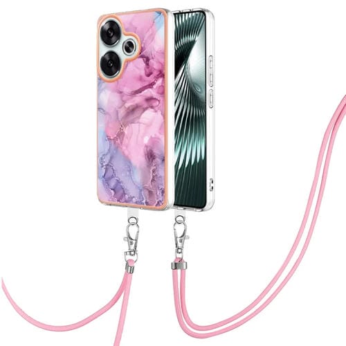 Funda para Teléfono con Imd de Doble Cara con Galvanoplastia de Mármol para Xiaomi Poco F6 5G con Cordón (Rosa 013)