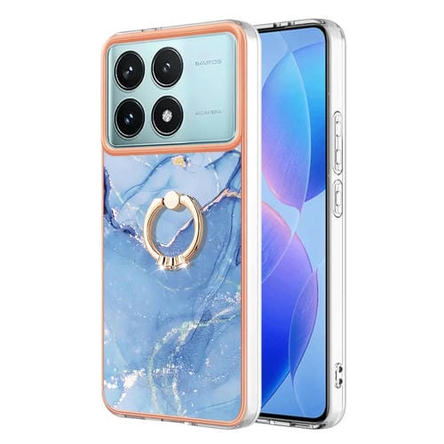 Funda para Teléfono con Imd de Doble Cara con Galvanoplastia de Mármol para Xiaomi Poco F6 Pro 5G con Anillo (Azul 018)