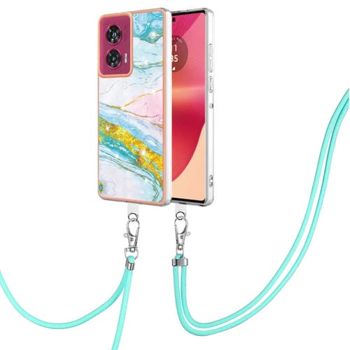 Funda para Motorola Edge 50 Fusion con IMD Doble Cara, Galvanoplastia Mármol y Cordón (Verde)