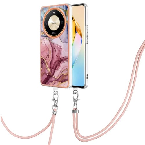 Funda para Teléfono Honor X9B con Imd Doble Cara y Revestimiento Mármol Galvanizado con Cordón (Rojo Rosa)