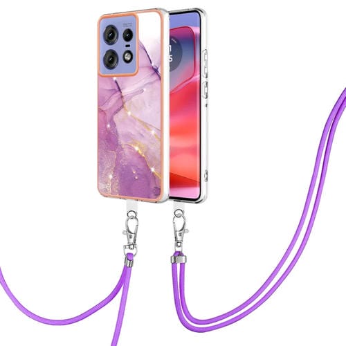Funda Teléfono Motorola Edge 50 Pro con IMD Doble Cara Revestimiento Mármol Galvanizado y Cordón (Morado)