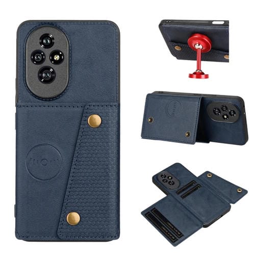 Funda para Teléfono Honor 200 con Ranuras para Tarjetas y Doble Hebilla Magnética (Azul)