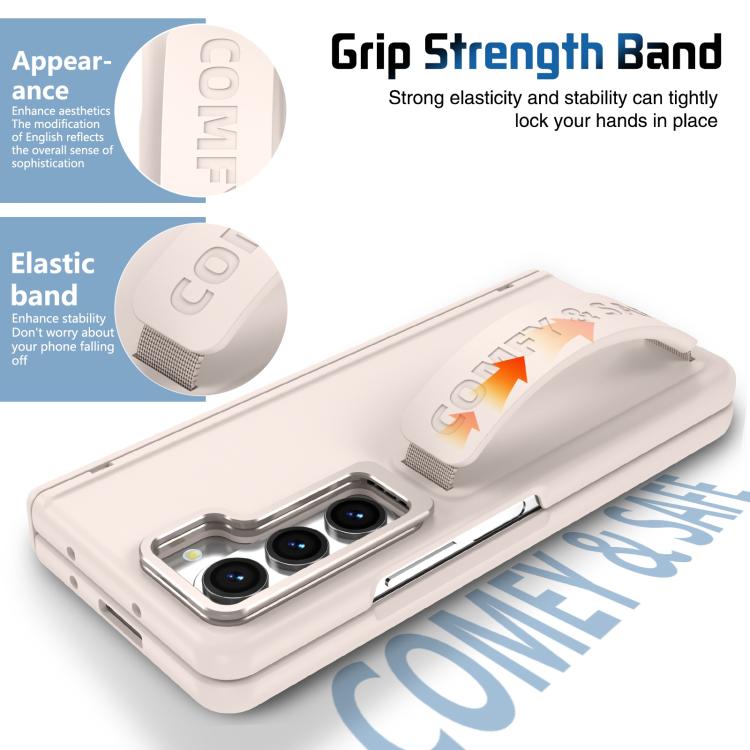 Funda para teléfono con soporte para lente integrada y correa para Samsung Galaxy Z Fold5 (albaricoque)