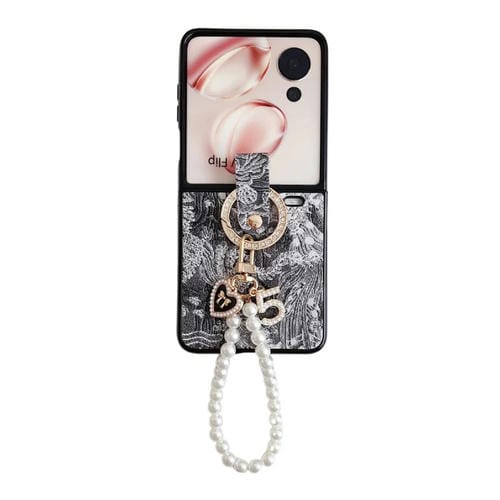 - 1x Funda para Teléfono Honor Magic V con Tapa Bordada, Cobertura Total, Cadena y Anillo (Negro)