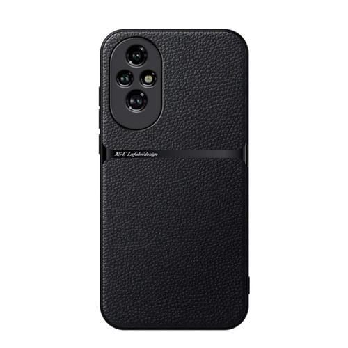 Funda para Teléfono Honor 200 con Tapa Magnética de Cuero de Lichi a Prueba de Golpes (Negra)