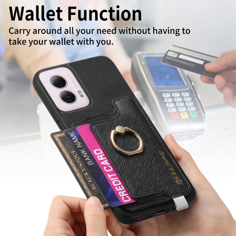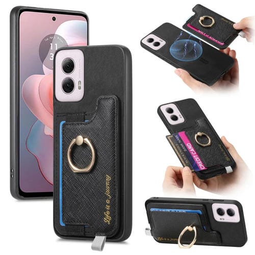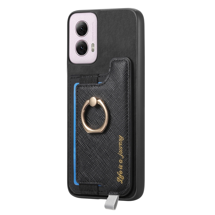 Funda para Teléfono Motorola Moto G Power 2024 5G con Tarjetero Anillo Cuero Diseño Retro (Negro)