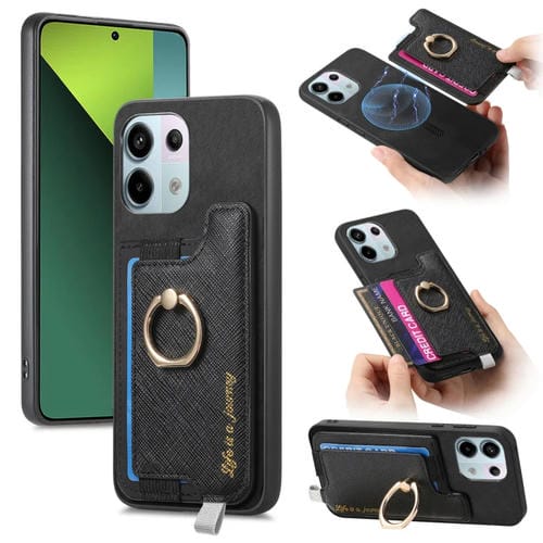Funda para Teléfono con TaRJetero y Anillo de Cuero con Diseño Retro Magsafe para Redmi Note 13 Pro 5G/Poco X6 5G (Negro)
