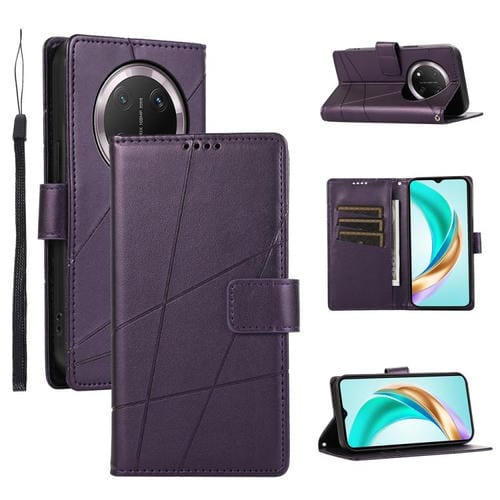 Funda para Teléfono Honor X9C Global / Magic7 Lite Cuero PU con Líneas en Relieve (Morado)