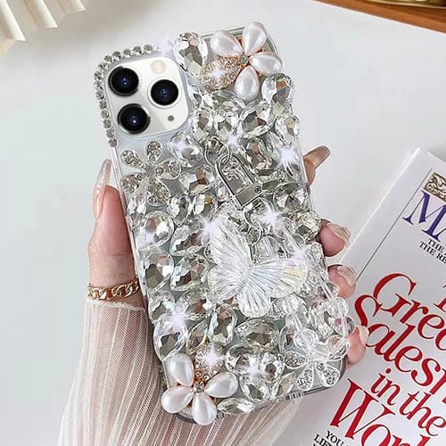 Funda para Teléfono PC con Diamantes y Mariposas Hecha a Mano para iPhone 11 Pro (Blanca)