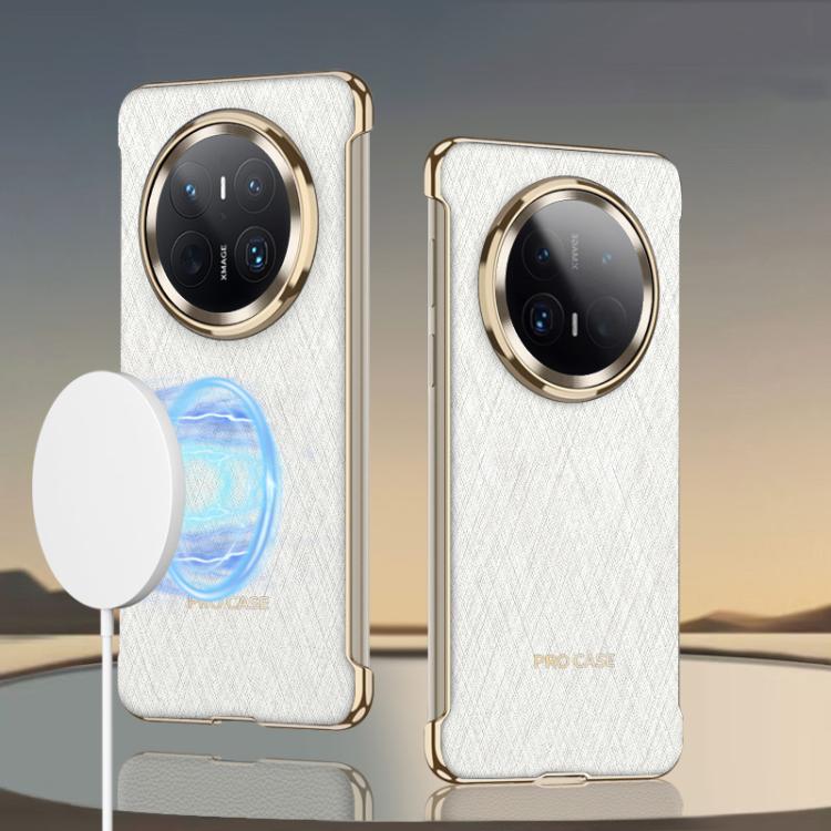 Funda para Teléfono Huawei Mate 70 Pro+ de Cuero Galvanizado sin Bordes Gkk con Magsafe (Brocado Plateado y Blanco)