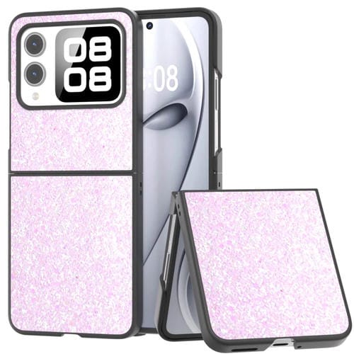 • 1x Funda para Teléfono Huawei Nova Flip con Marco Negro y Purpurina de Colores (Rosa Brillante)